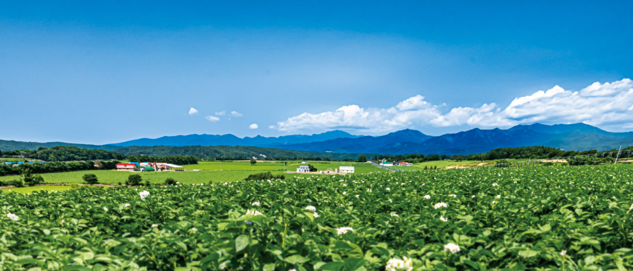 北海道の南西部・渡島半島の内陸に位置する今金町は、町の総面積の約8割を森林が占めている自然豊かなまち。農業が盛んで、野菜や米、豆類など多彩な作物が生産されています。全国区の知名度を誇る〈今金男しゃく〉を筆頭に、清流日本一に幾度も選出されている後志利別川の恵みのもと、こだわりから生まれる高品質な〈今金米〉や〈今金和牛〉など、生産者が丹精を込めて育てた「今金ブランド」の農畜産物は、市場から高い信頼を得ています。